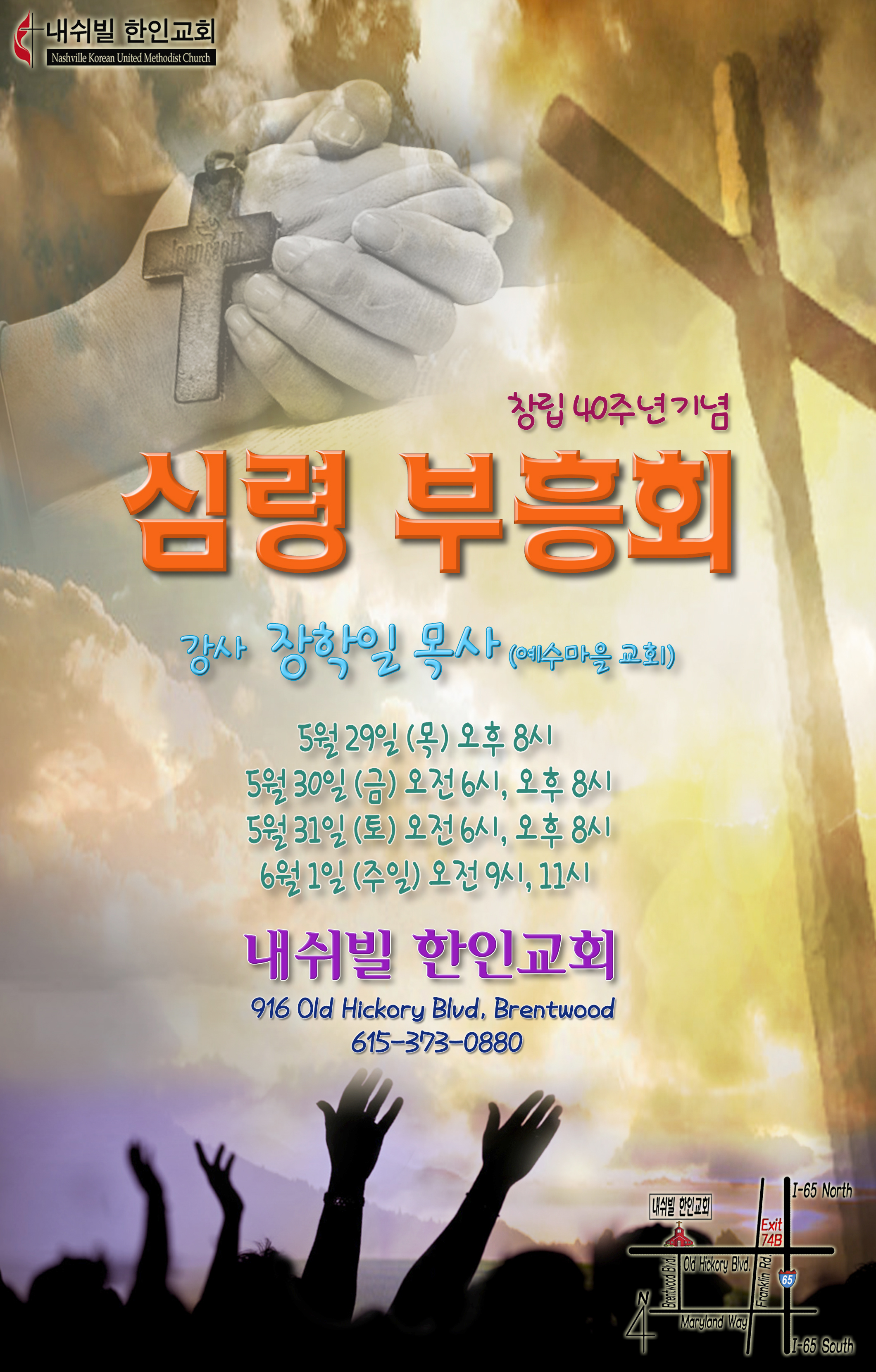 봄철 부흥회 (5/29~6/1) Posted in: Announce | May 20, 2014 at 5:59 am, by admin 예수 마을 교회 장학일 목사님을 모시고 진행되는 봄철 부흥회가 5월 29일 목요일 부터 6월 1일 주일까지 있습니다. 자세한 정보는 아래 이미지를 참고해주시고, 이미지를 클릭하시면 더 큰 사이즈로 보실 수 있습니다.