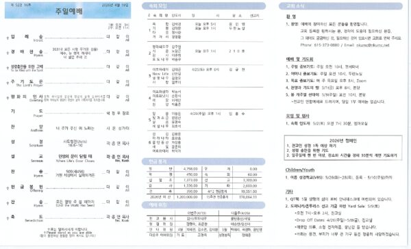 2026년 4월 19일 주일 예배 주보 다운로드