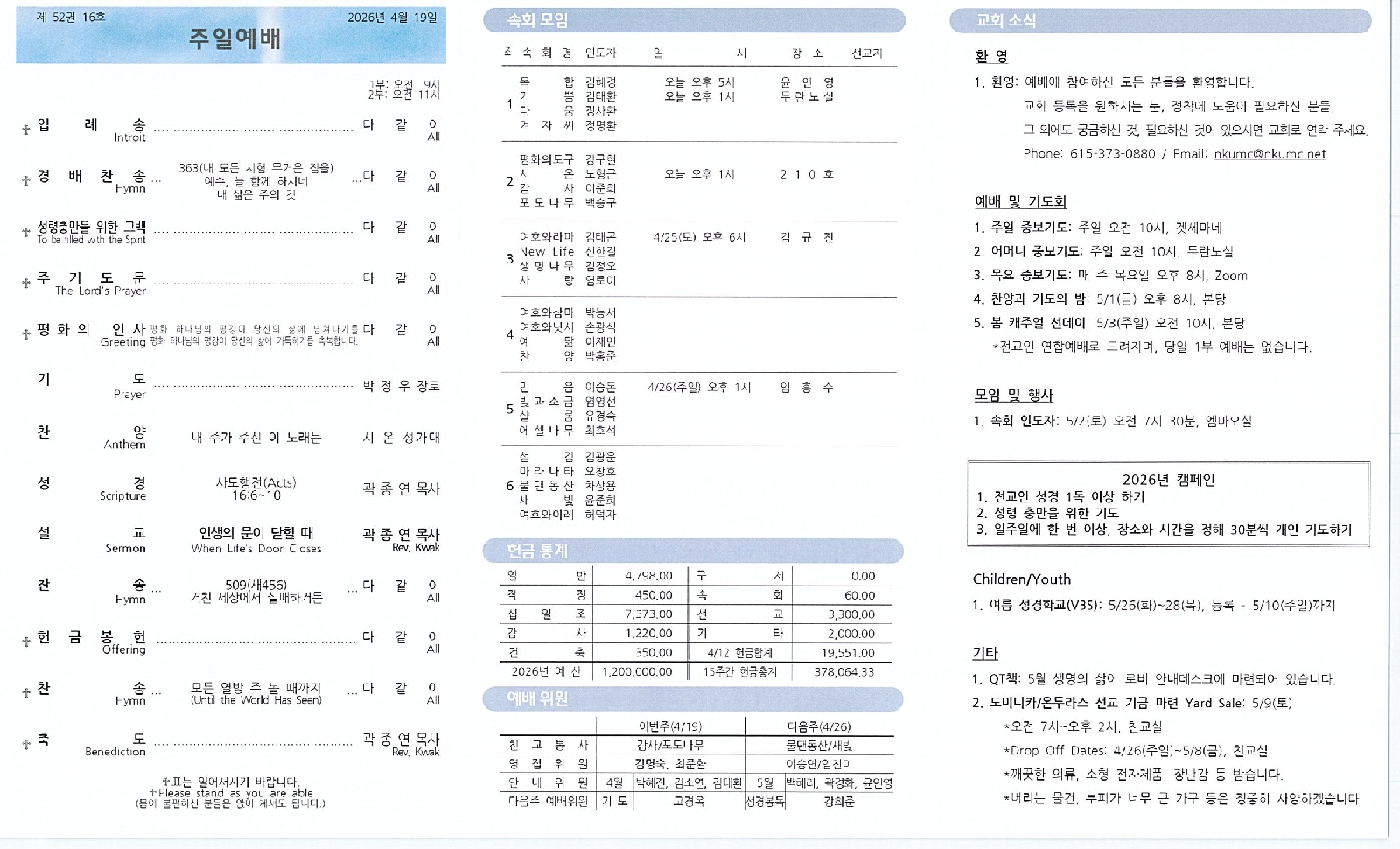 • 2026년 4월 교회소식